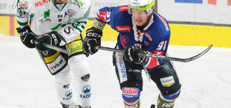Nur 24 Stunden nach dem Overtime-Sieg in Cortina legte der EC Bregenzerwald nach und gewann am Samstagabend auch bei den Rittner Buam SkyAlps mit 5:3. In einer intensiven Partie bewiesen die Wälder erneut Comeback-Qualitäten, nutzten defensive Nachlässigkeiten der Gastgeber eiskalt aus und feierten damit den vierten Sieg in Serie. ©Max Pattis
